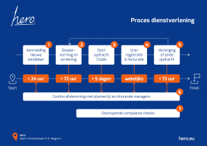 Dit zal maximaal 5 dagen zijn vanaf het moment van aanmelding. Echter zit hier wel een afhankelijkheid in van de zzp’er hoe snel de vereiste documenten worden aangeleverd aan Hero.